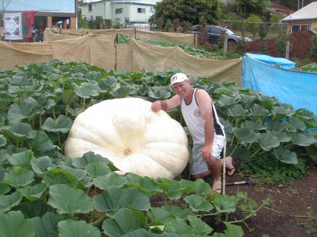this is micheal knight he lives five minutes up the road this is his pumpkin its seed came out of a pumpkin tidge grew last year it taped 326 inches on day 48