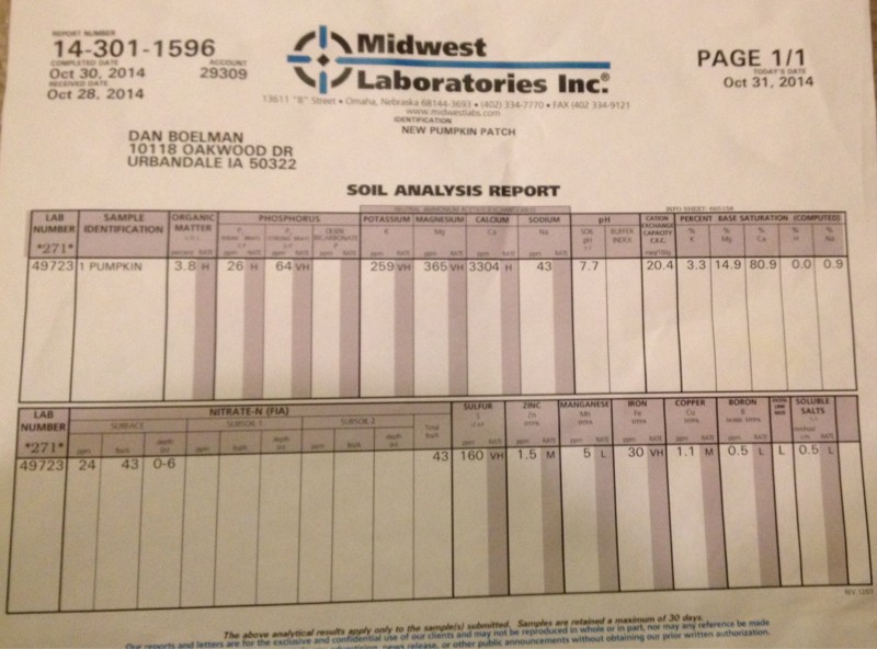 Fall test of back yard suburb soil. Have tilled in two pick-up truck loads of horse manure, and a good amount of leaves.