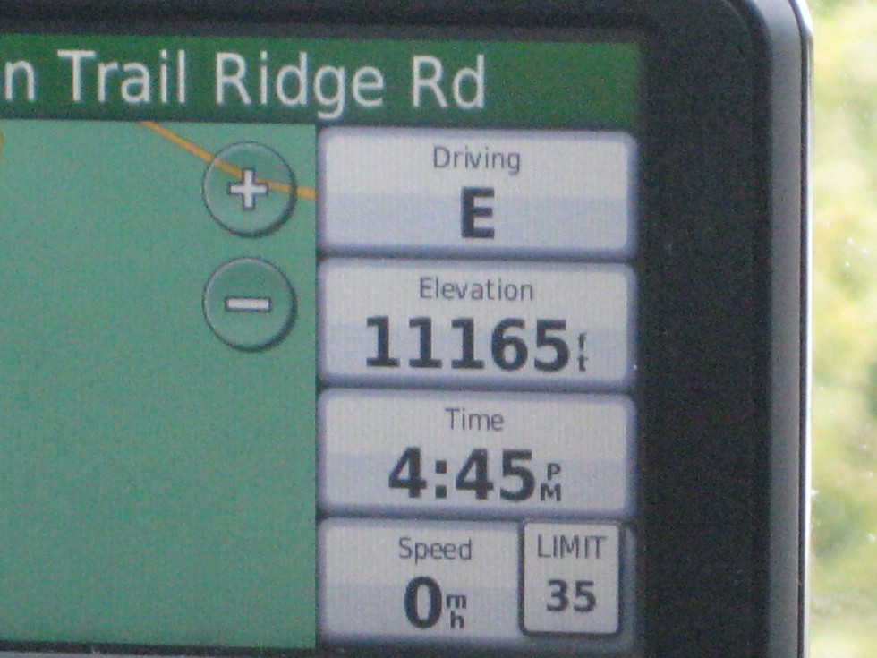 Elevation reading of GPS on a trip to Rocky Mountain State Park, Colorado