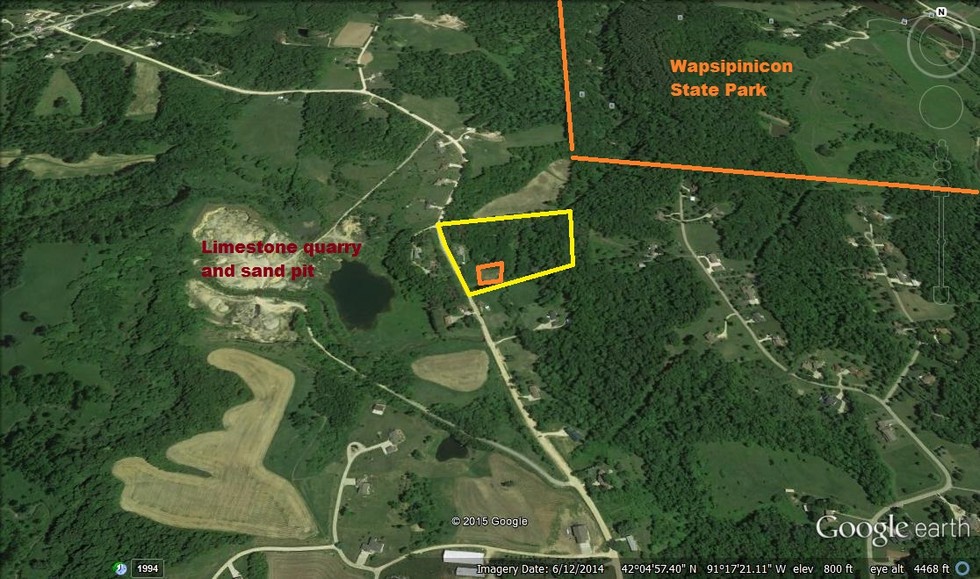 Darren C. started something, showing aerial views of his pumpkin patch and asking others to do the same. This is a wide view showing our acreage and pumpkin patch with a bunch of the neighborhood. From all of the trees, you can see why I have problems with deer and other critters.