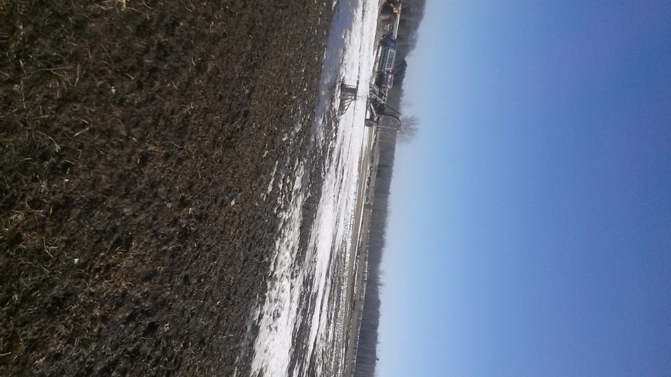 Garden and pumpkin patch almost bare. Looks like the winter wheat crop is sprouting. I got it planted late last Oct. just before the ground froze up.