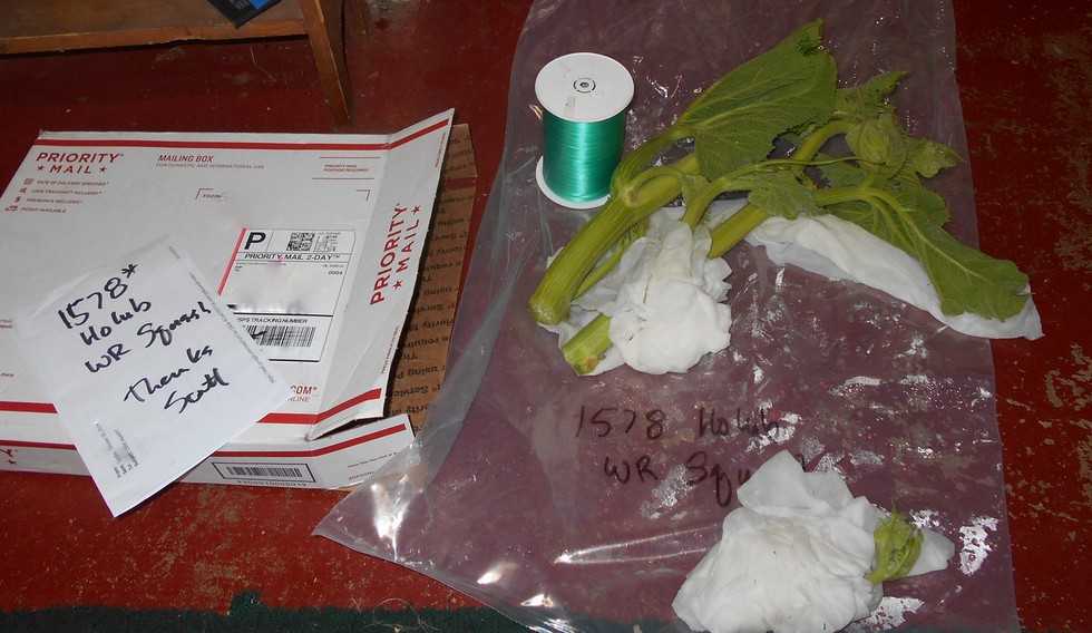 I was also able to get material from Scott�s plant that grew the World Record squash (615 Cantrell x self). Due to space I could not keep the plant very big to set a fruit on but I hope I can kick the plant back into an aggressive vegetative stage so I can have the potential for clones in the spring. If this ends up working out I am hopeful this will have the possibility to speed up the squash breeding lineage.