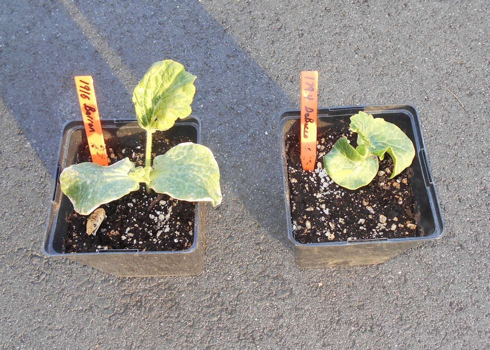 179.4 DeBacco �14 (F:335 Scherber �11 x 1734.5 Steil) �Marshmallow�- This is a result of all my past breeding so I am continuing this lineage. This seed proved itself last year and in the greenhouse the root formation is impressive compared to all other plants. It is important to point out that my winter pumpkins are grown mainly with just water so differences that I see are more representative of true genetics then that of product additions.