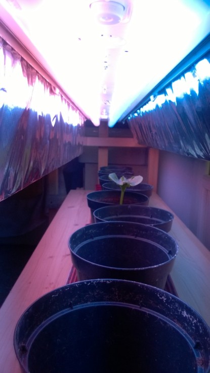 This is my grow light. They are two T8 neon, a blue one and a pink one, they're working well but must be really close to leaves.