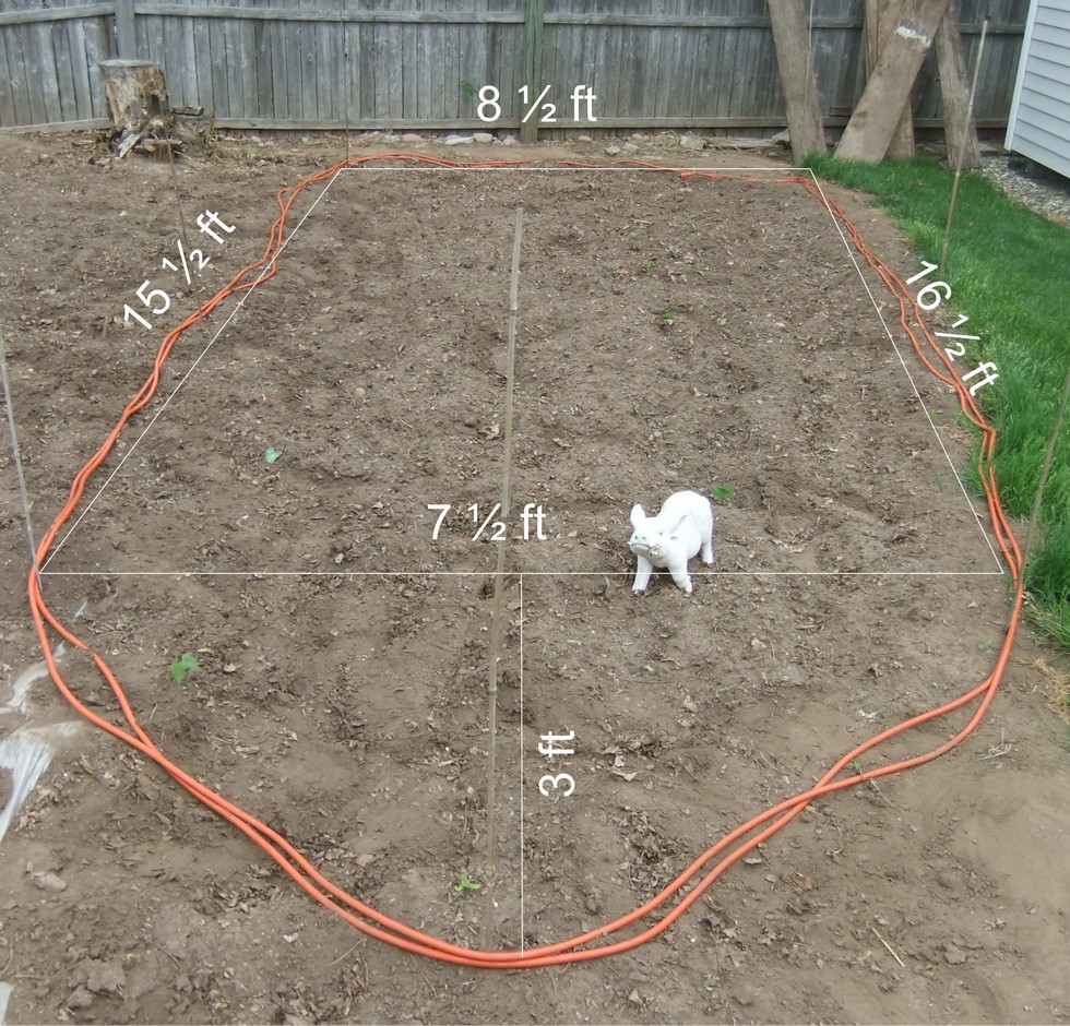 FlatNorm is a bit behind schedule with his 150 square ft patch this year but not worried. He marked out the perimeter of his patch today which will eventually be bordered by his wind break. The seedling is still a few days away from going in the patch.