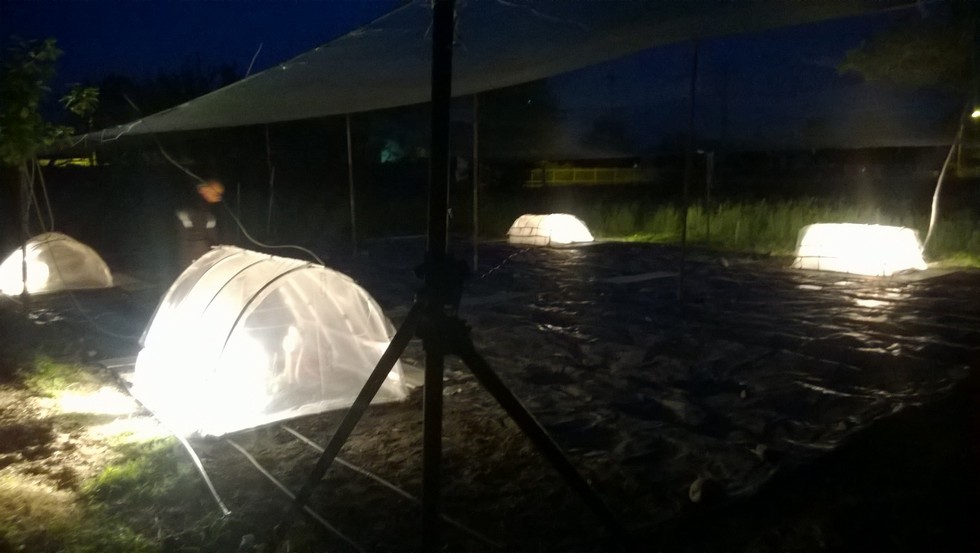 Patch by night, we placed halogen lamp to heat the mini greenhouse