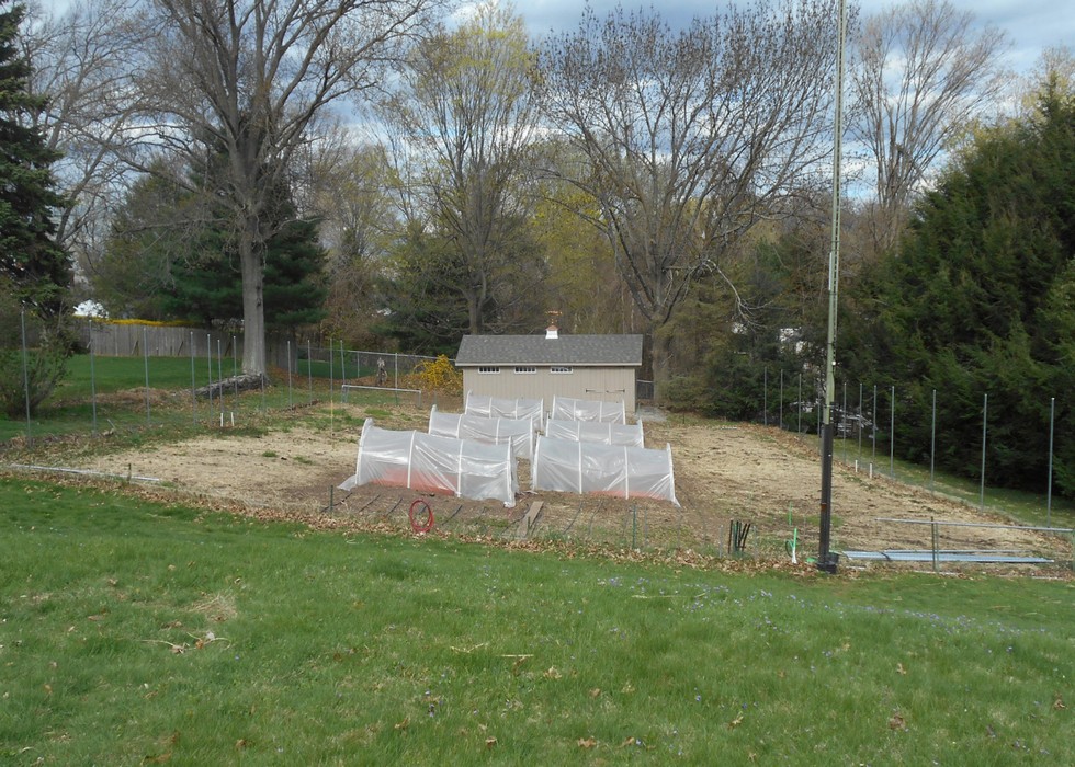 Here is my patch picture with a lot of the work recently completed due to the longer than normal snow pack on the ground. Last fall, I added some old hay bales to the patch so that is what is on the soils surface. Due to the colder than normal temperatures the natural plant life seems behind when I look at past pictures. Still early in the season and this is why cold-frames are important.