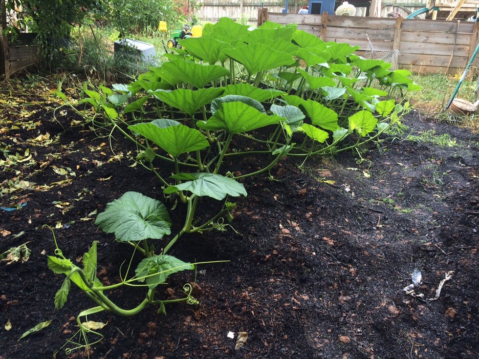And then there was one. I pulled the Lovelace volunteer and I've gotta say, it had an impressive root system for the relatively young age. It's probably better that mother nature made the decision for me to pull that plant and make some more room for the 1969 Haist. This thing is an absolute tank, very vigorous grower, and I've already pinched one female off, I doubt I'm gonna pollinate this one at ~11-13' as I'm gonna be out of town when I think its going to open. That one has 8-9 secondaries per side behind it so the plant is filling out its space pretty well. I've already terminated two of the side vines and have to actively keep up with pinching terts. There is another one in the tip that will probably end up around 16-18' and I'll have a lot more plant behind it and a lot less plant to grow after I get a set. 10 more days would still put this one at 100 days of growth which is a long time down here. If the pumpkin grows anything like the plant...its gonna be a fun ride.