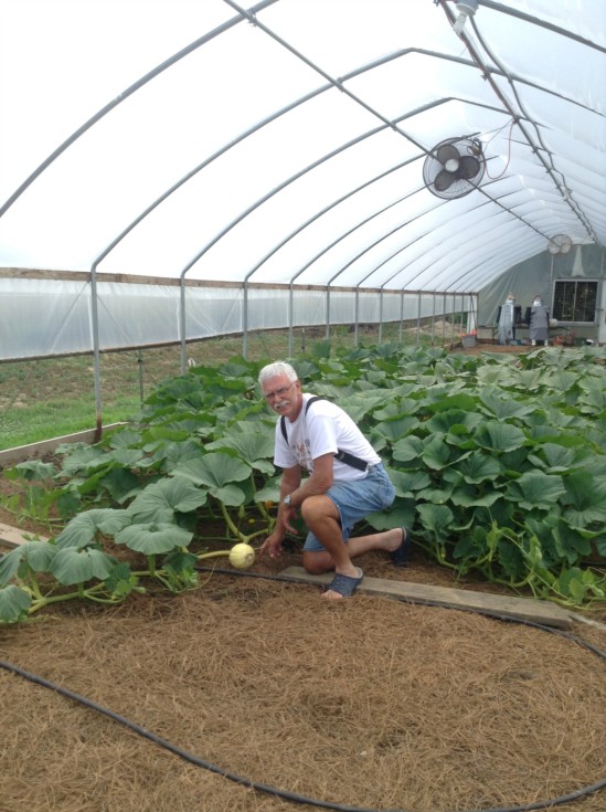 John has a pumpkin started on his 798 Brooks from last year. The 798 was his 2nd place entry at the NC state fair. He has crossed the 2008 Neptune into it. The plant looks nice and healthy.