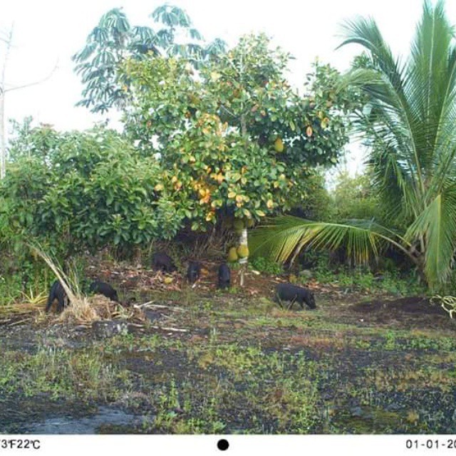 YEP...I GOT PIGGIES!!...these feral piggies can have all the jackfruit they want but STOP destroying my pineapple patch :( ...can't see it in the picture but pumpkin patch is to the far right...