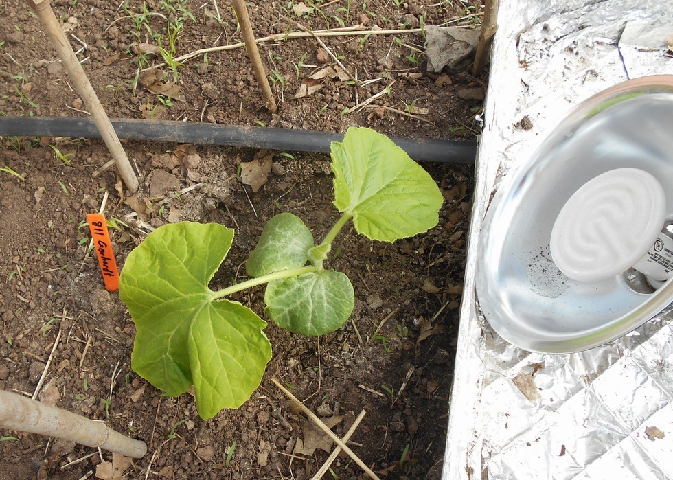 With the cold start to the year my plants are showing a sulfur deficiency which is the first time I have seen this happen in my patch. This plant has my best odds of producing a bright orange pumpkin. I grew it last year and despite the virus that took down the plant early I was impressed also with its ability to grow a nice sized pumpkin. For these reasons is made the cut for this year�s patch.