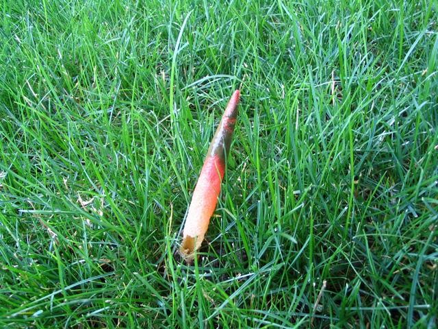 This hideous "Elegant Stinkhorn" Mushroom (Mutinus elegans) showed up in the front lawn this morning.
