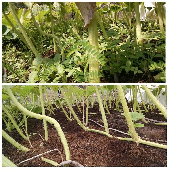 Before and After...I won't be letting these weeds get away from me again!! LOL...I do havta say that I'm proud of myself for managing my vines though this year...this sure has made a difference when I do havta weed or spray... : )