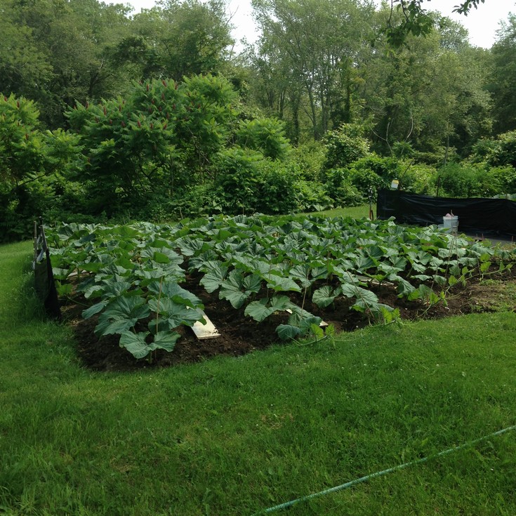 The 1449 plant is at about 600 sf in this picture. The pollination on June 23 took and has grown somewhat more slowly than I would have liked at this point. The summer evenings here in Southeast Mass. have been cooler than average this year.I'll blame it on that.
