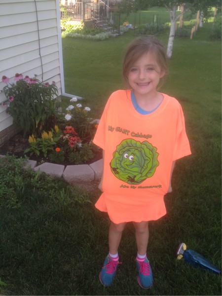 Shirt says "My Giant Cabbage Ate My Homework" :-) Ashley got a nice package from Bonnie Plants today for her giant cabbage school contest submission