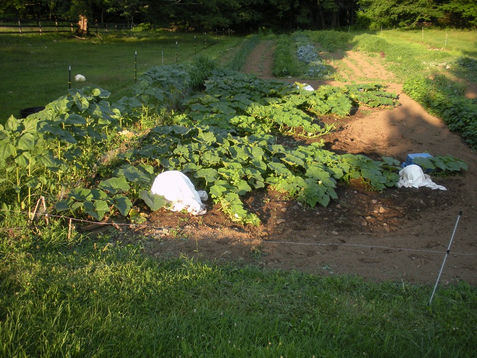 This picture shows the 1245 Berard in the background, in the foreground is the 1578 Holub. It is hard to tell from this picture but these plants could look better. These two plants are being grown in the standard fashion that I have always grown with. They are on tilled soil, I cover at the leaf nodes, and they have 12' secondaries in a Christmas tree pattern.