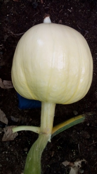 So This was my earliest pollination left on the 228 Hoskins. 29 inch Circ. @ 15 .It had some oddly indented parts and the shaped seemed off so I culled it in favor of a nicely shaped and positioned youngster another 3 feet out.