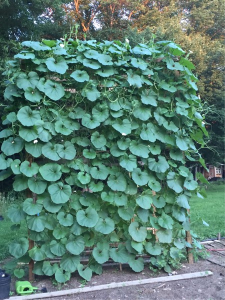 To 139.25 Ansems Long Gourd plants up one side and over the top.