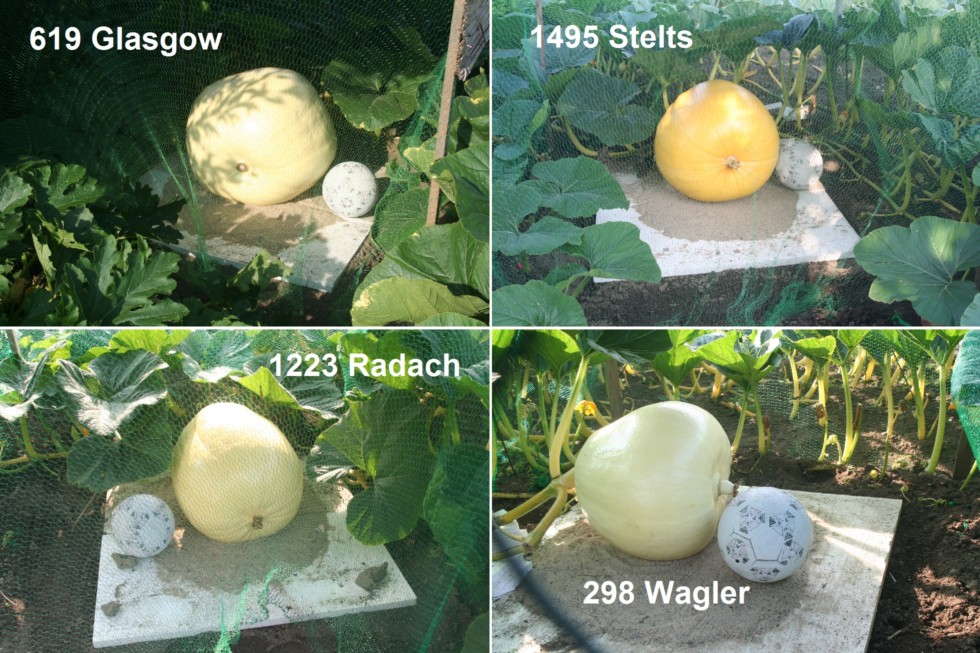 The pumpkins are growing. Interestingly, my 298 mimics the growth curve of the 1495 Stelts so far (fingers crossed that it will do that for the next couple of weeks and that both of them will bear a little surprise in terms of some % heavy). Funny shape of the 298, actually.