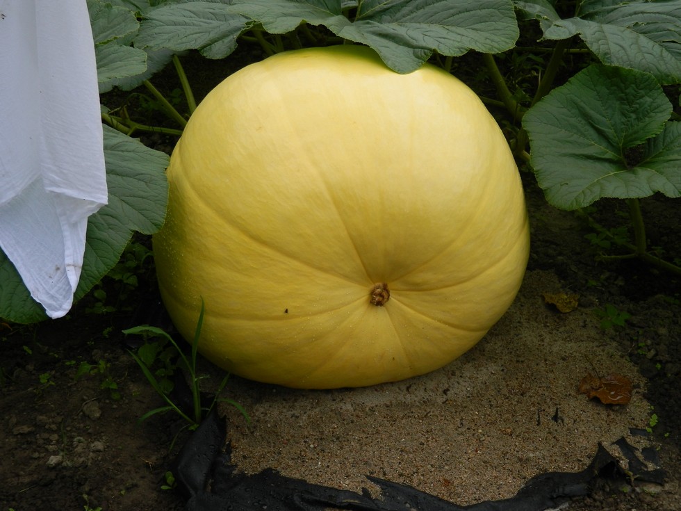 359 Foss 24 DAP. Self pollinated 5 lobe 14' from stump on July 2. We culled one that was pollinated a day earlier on a secondary. Most of the vine growth has been terminated. We usually let the main and a couple secondaries grow to keep some fresh leaves on the plant. Plus there are always a few pop-up tertiaries that we missed that get snipped when they show up. I tape a sharp pocketknife to a pole for terminating pop-ups so I don't have to wade in and compact the soil.