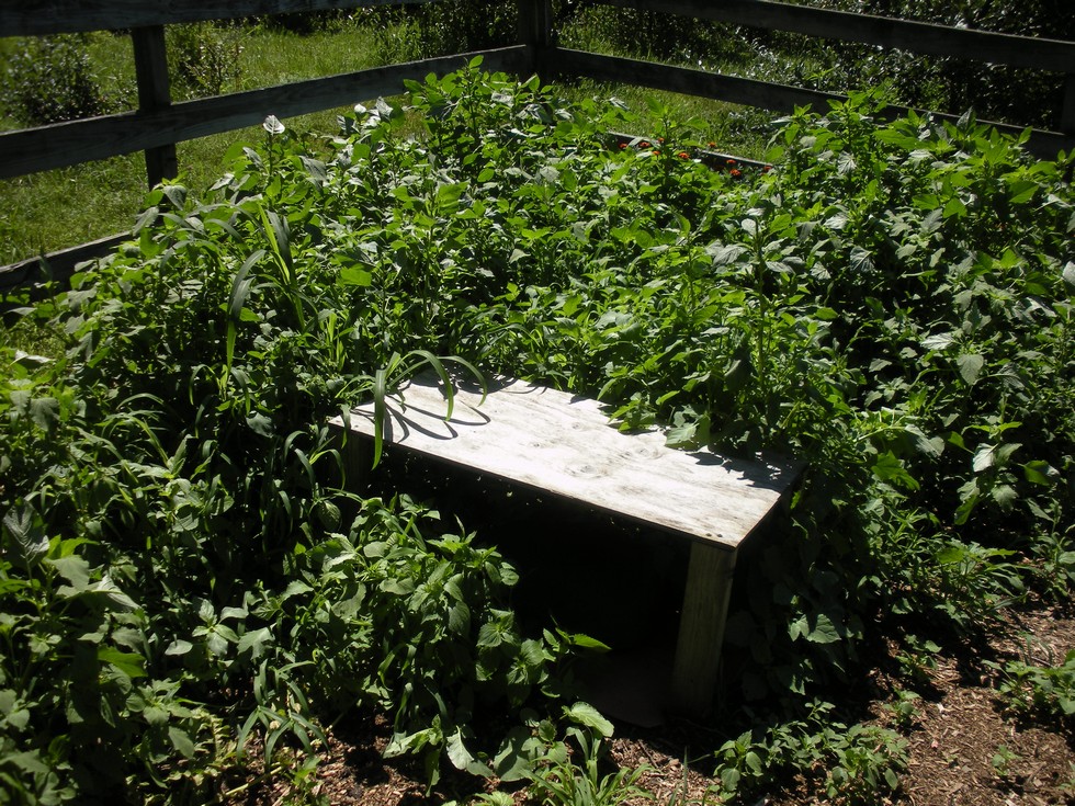 170 Bright Black Diamond plant. After vole and aphid damage, this plant was overtaken with weeds. I didn't think it was worth the effort to pull them, as the plant was already nearly dead. This doesn't take long in my garden, I have too many weed seeds in the soil. I need some new soil without the huge weed seed reservoir. What they say of weeds is true, "One year seeding, seven years weeding." I have some weed control ideas for next year.