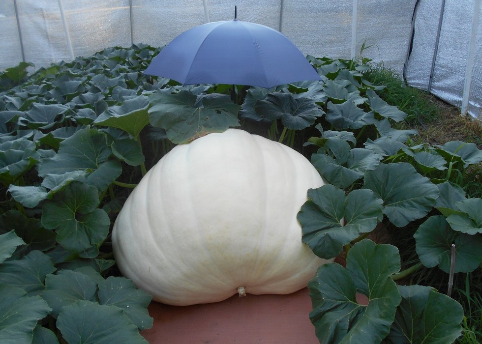 I like the symmetrical shape of this pumpkin which leads to no major flaws in the main structure of this pumpkin that can be visually seen. The color is what I expected from the 220 DeBacco �Snowball� lineage. Only down side is I do have a stem side split that I am monitoring but at the moment it does not go through so all is good.