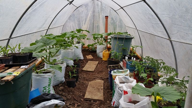 Three days later: The greenhouse is refilled again Each day there are a few plants reguiring bigger pots.