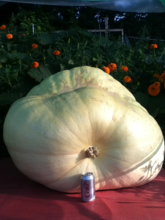 This is Piedamus, named through a Facebook contest I offered to my friends. Piedamus is the Greek God of Giant Vegetable Growing. Great growth yesterday with warm temperatures and lots of sun. Piedamus really sucks up the water and a few special treats I have been feeding him.
