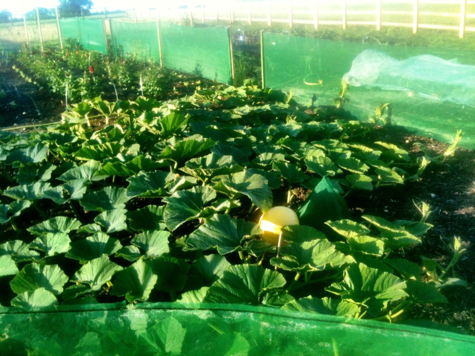 Pumpkin is set at 10 feet on the main vine. With the marginal increase in size over the last week (not sure of weather tho) and the increase in plant size, most of the side vines now stopped above the pumpkin.