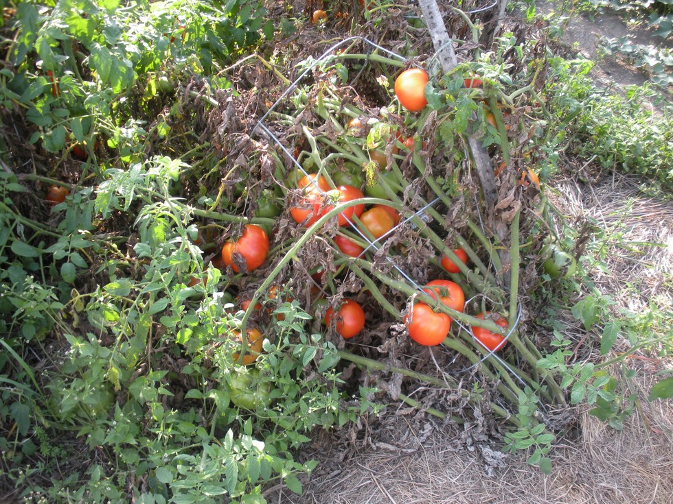 It's been a great year for tomatoes. These are 'Better Boy's'. In my opinion they are the best variety, the yields can't be beat and the taste is very good too. I have been growing them for around 30 years! The heirlooms are great but they just don't yield like this variety. Also splitting is not a big problem with them either. All the best tasting heirlooms get splits as they mature.