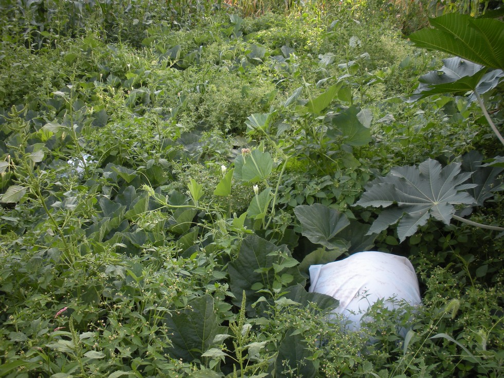 My bushel gourd plants, starting to lose them to the weeds. This is with the hay mulch too. Next year I will have to put the mulch down thicker. Obviously the pigweed was able to poke through in the thin spots. I am not sure I will be able to beat my PB of 187.