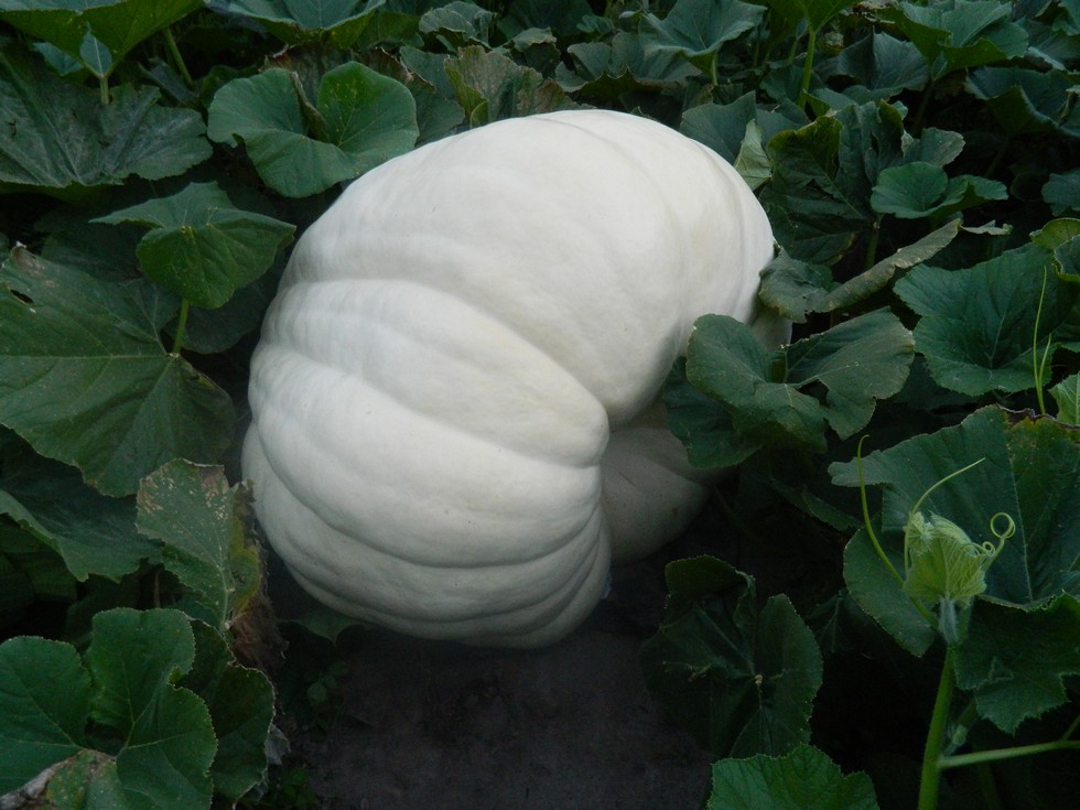 The 1493 Witter, growing on a secondary after we lost the main in a storm. It has huge vines, but they have a few splits and blowouts. I also found a 100#+ hiding out under the huge leaves. It is over 700# and fastest grower in the patch now. We really hope this one makes 1000#.