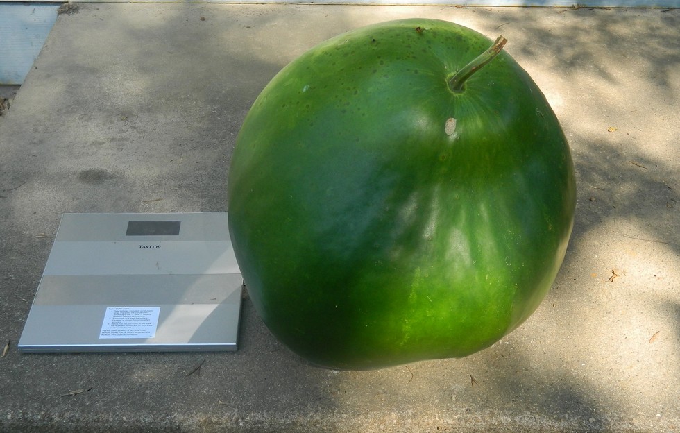 Jacob picked our bushel gourd today. It had stopped growing and the leaves were shriveling up. It just made 71#, but it was growing in a shady spot with higher than desired ph. He self pollinated it so we saved the good genetics from the 279.5 English world record. And we have a couple more of the 279.5 seeds. If we grow it again, it will be down by the pumpkins with better soil and sunlight. Cucumber beetles were really reduced but not eliminated by the new insecticide. I can hit them again on Wednesday. I will use the Daconil again on the AG's to try to knock out the PM. I add milk to the foliar feedings and it at least is keeping it from spreading. The watermelons are still growing and we hope a few of them will hit our 100# goal. 92 degrees today, but a cool down with rain is supposed to start tonight.
