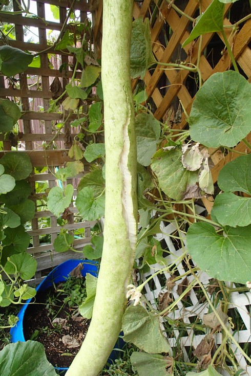 In the space of an hour, I find I lose one squash and one long gourd. Not a nice day. I have never had one split before. It was fine on Friday.