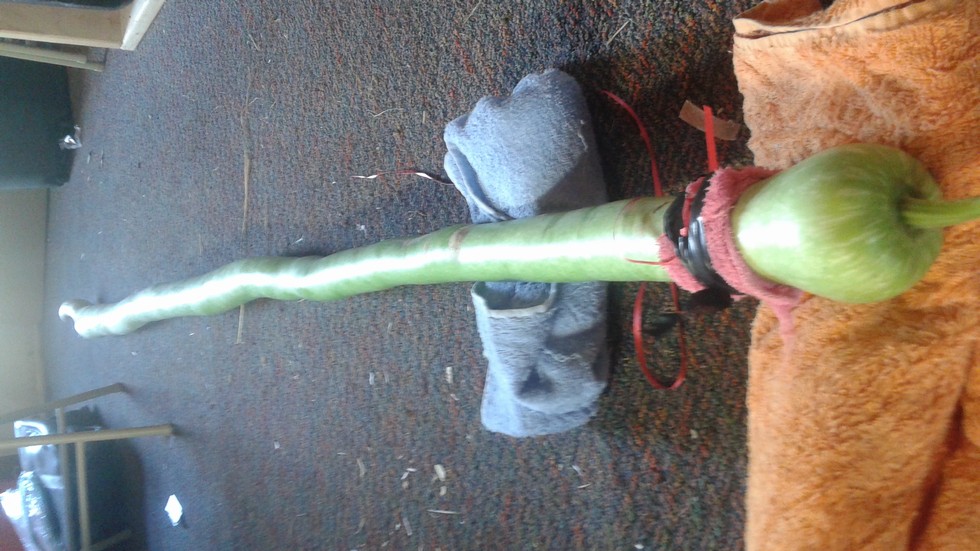 My long gourd is 107.5" long. It was supported at the top but waving in the breeze 3-4" back and forth. I still have four others that are still growing and protected from the wind.