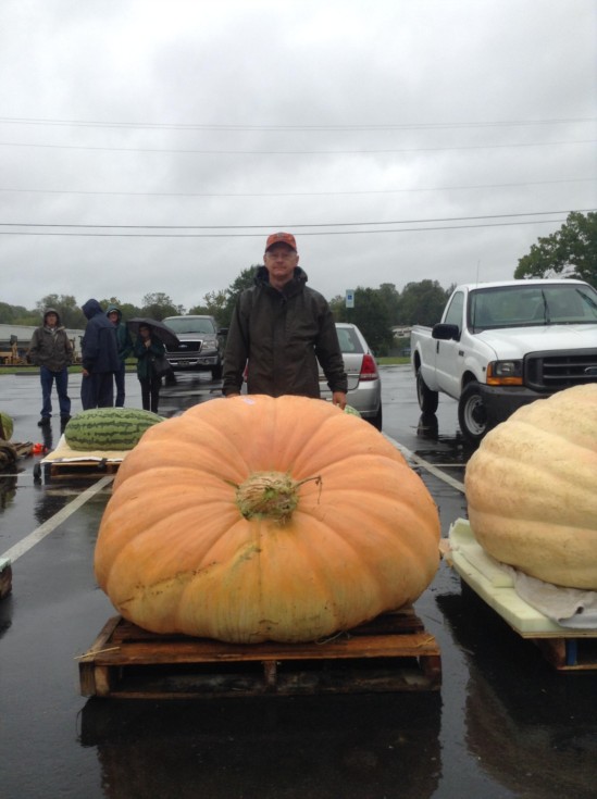 "Sambo" Sam Lovelace and his pumpkin. Sam and the crew do a great job of organizing the weigh-off.
