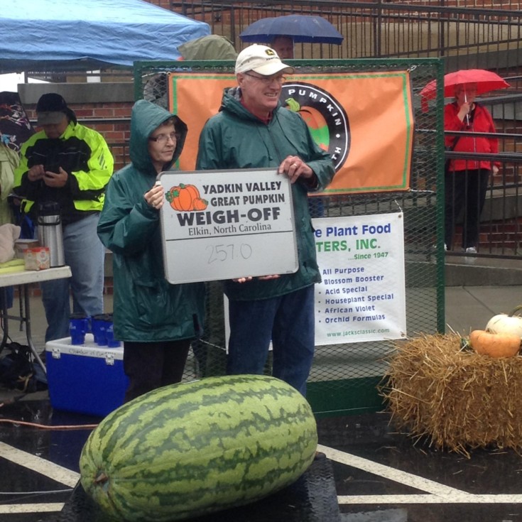 Larry and Ann Boyette with their 257 1st place melon. Larry took the ribbon and Ann took the money. Smart man, Larry.