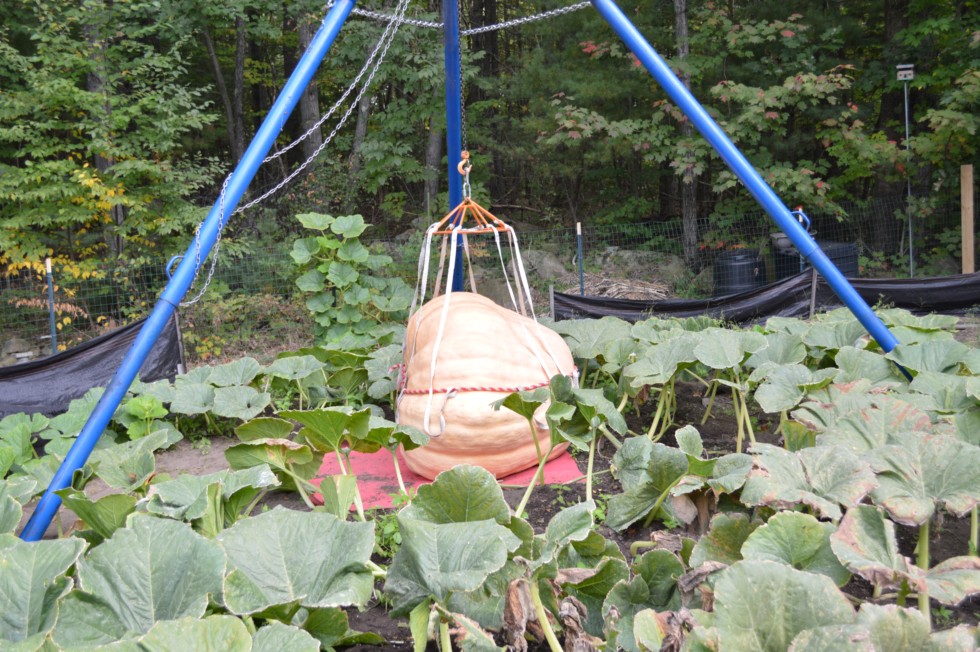 I've got my tripod hoist stand all set up but haven't cut my pumpkin yet. It's still growing and I've got 2 more days until Deerfield. Taping at 1133 pounds. We're expecting 2-3 inches of rain so I'm hoping to get another 5-10 pounds before Thursday.