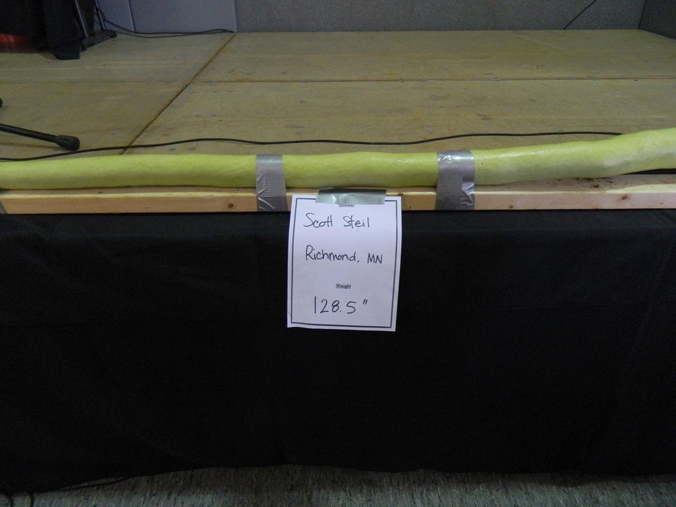 Scott Steil's winning long gourd and Minnesota state record 128.5". Just missed my site record from last year by 0.5".