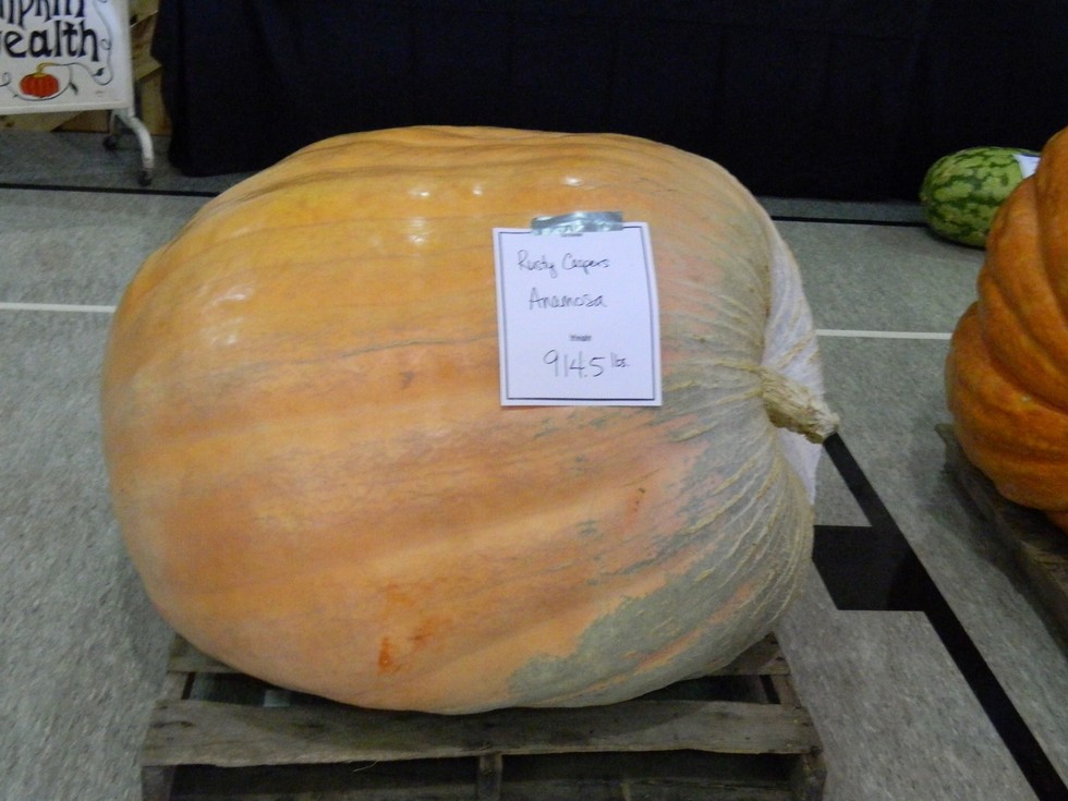 My neighbor on the next farm to the north, 2nd year grower Rusty Caspers had a new personal best. That 3 personal best pumpkins grown less than a quarter mile apart. Rusty had a very successful field pumpkin stand on main street too. Rusty's son and grand daughter brought in personal bests too.