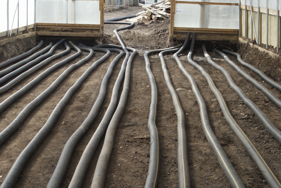 Gary the Wizzzz Need to come clean now. I challenged you because I was cocky and wanted to kick your ass in a good old competition. Well here is what I did, Early this spring I took out 2 feet of dirt out of my greenhouses, installed 4 inch drain tile across the whole bottom, they are 18 inches apart, graded and empty into a common sump. Why?? Well I have a very high salt content and the salts leach up into me soil, this stopped that in its tracks. Secondly, the water table is high and when we get a lot of rain the ground gets saturated and takes for ever to dry out, even in the greenhouse because of the water table. BUT the biggest reason for this was to heat my ground from the bottom up. and add oxygen.