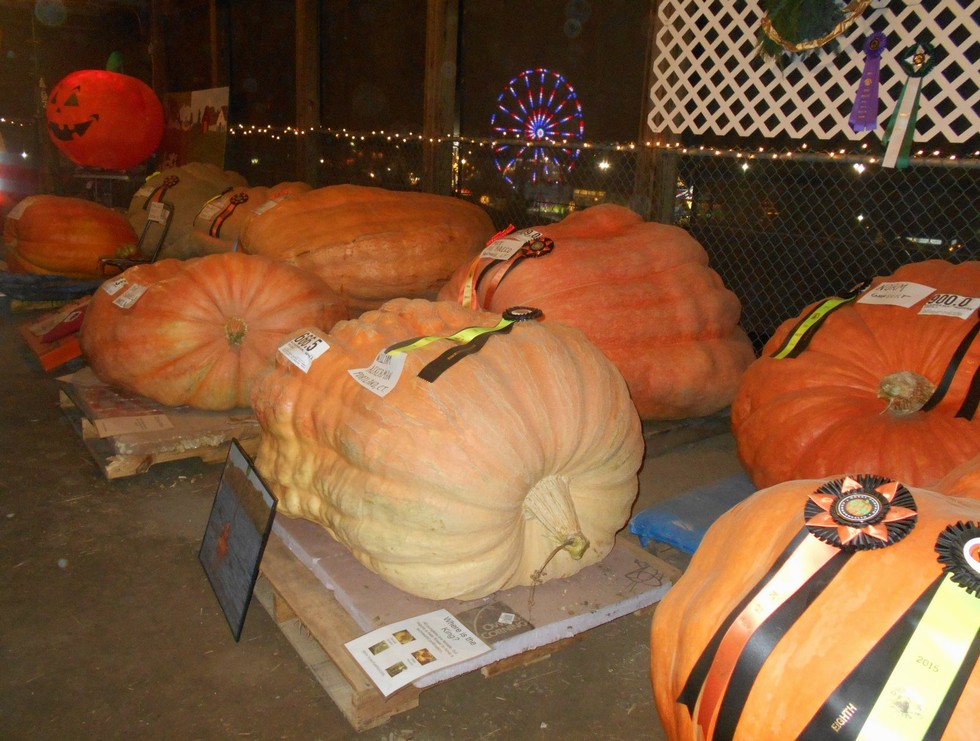 Here are some of the pumpkin entries that were at the Durham Fair this year. What helps makes this a unique display is at night we have the Ferris wheel in the background and we also added the giant air blown display pumpkin. The fair goers really seemed to enjoy our display this year. We see literally thousands of people and answer all of the questions they ask, so it is a very busy time, but the Team helps out.