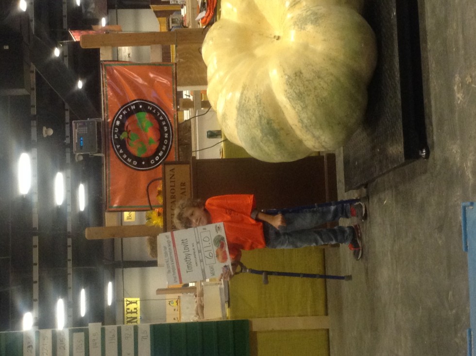 TJ Lovitt with his second place 611. TJ is a born entertainer. Congrats, TJ. That's an awesome pumpkin.