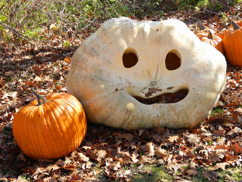 A little late posting photos of our big pumpkins carved for Halloween. This is Jacob's 899 and one of the field pumpkins.