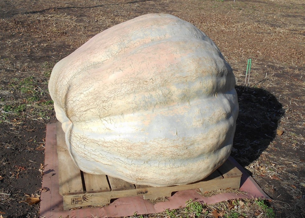 This pumpkin was shockingly close to the weight of what the pollinating plant produced as it is only a half a pound less, but the color is very different, which at least provides one way to distinguish it. This pumpkin had a little more of that cantaloupe-like texture to it and it also went heavier than expected. I brought this pumpkin to the weigh off in Frerich�s Farm in Rhode Island.
