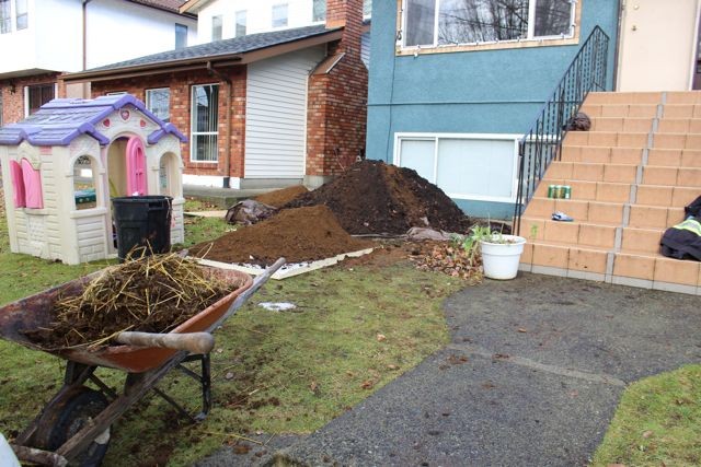 Happy New Year to everyone. I had a job only 5 mins away from Rondriso farms in surrey. I stopped in and couldn't turn down a load of manure. So in my t-shirt on a glorious Jan Vancouver Sunday, out came the soil, in went the manure. Aside from the stem, last years pumpkin was completely composted, leaves about 50% composted. Good luck to all the growers in 2016!