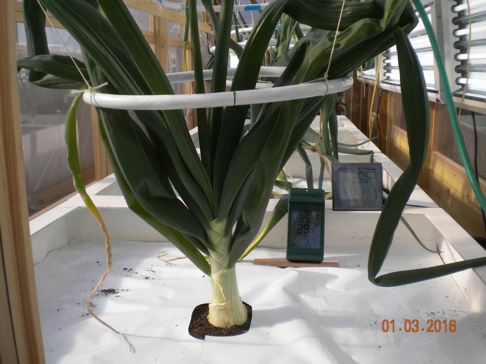 The new frame Onion is growing ok 7.0inch high x 7.5 circ. 14 leaves.