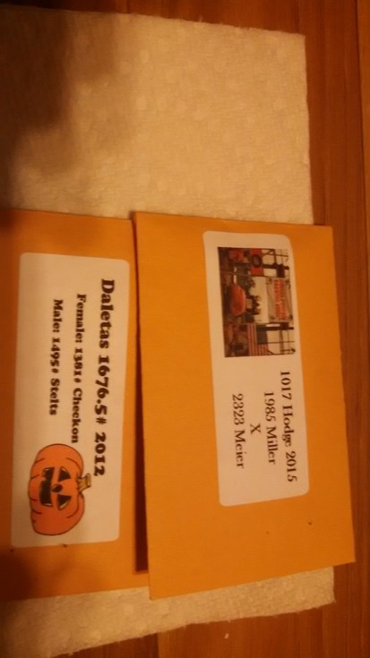 1676.5Daletas12(1381Checkon10 x 1495Stelst10) and 1017Hodge15(1985Miller13 x 2323Meier14) for AG's and 3.30 May14 (4.57 MacCoy x open) and 7.05P0rkchop15(5.30Big zac MacCoy x open). The rutabaga is 96.5Hunt14.