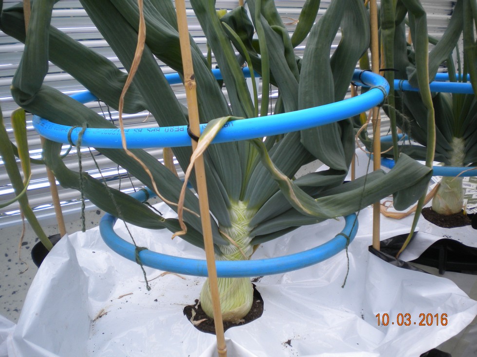 I gave my friend some Onion plants before Christmas and visiting today find that he has grown then far better than I have mine. This one is 8inch high x 11inches circ. and looks healthy. He is copying my growing method exactly but clearly they are doing better in his conditions.