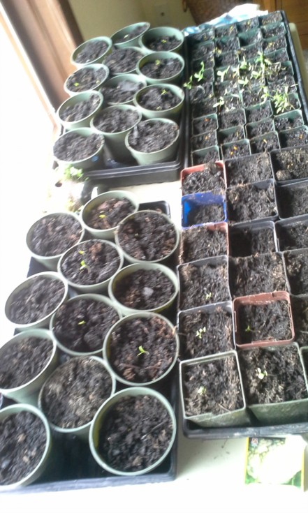 Tomato seeds in pots on 3/15/16 and they're on the way.